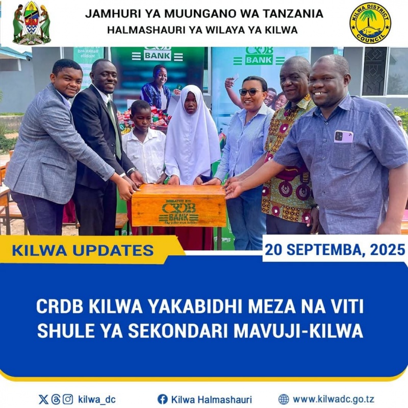 Benki ya CRDB wilayani Kilwa imekabidhi msaada wa meza 40 na viti 40 vyenye thamani ya shilingi 3,200,000/= kwa Shule ya Sekondari Mavuji iliyoko Wilayani Kilwa, ikiwa ni sehemu ya mchango wake katika kuunga mkono juhudi za serikali katika kuboresha mazingira ya elimu wilayani Kilwa.