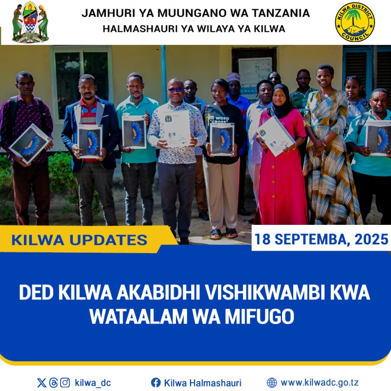 Mkurugenzi Mtendaji wa Halmashauri ya Wilaya ya Kilwa, Ndg. Hemed Magaro amekabidhi jumla ya vishikwambi 53 vilivyotolewa na Serikali ya Awamu ya Sita inayoongozwa na Rais Dkt. Samia Suluhu Hassan kupitia Wizara ya Mifugo na Uvuvi, kwa ajili ya wataalamu wa mifugo wa wilaya hiyo.